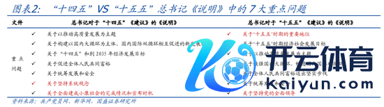 >结构上,两次大体推敲,“十四五”狡计编制《建议》共15部分、三大板块、60条,“十五五”狡计编制《建议》共15部分、三大板块、61条;两次《说明》均对7大问题作念了重心说明,其中,推敲的有5大问题:狡计期主要看法、推动高质地发展、“双轮回”、“共同浊富”、统筹发展和安全;本次替换了2大问题:“十五五”时间的枢纽地位、对持党的率领(“十四五”《说明》是对持系统不雅念、全面开发小康社会的完成情况)。
