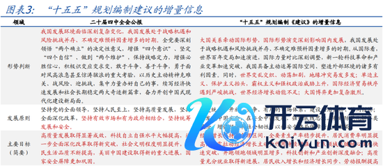 2、主要看法方面,定性定量相归并,强调“十五五”时间“经济增长保持在合理区间、需要保持妥贴的经济社会发展增速”,新提“住户耗尽率显著提高”。
