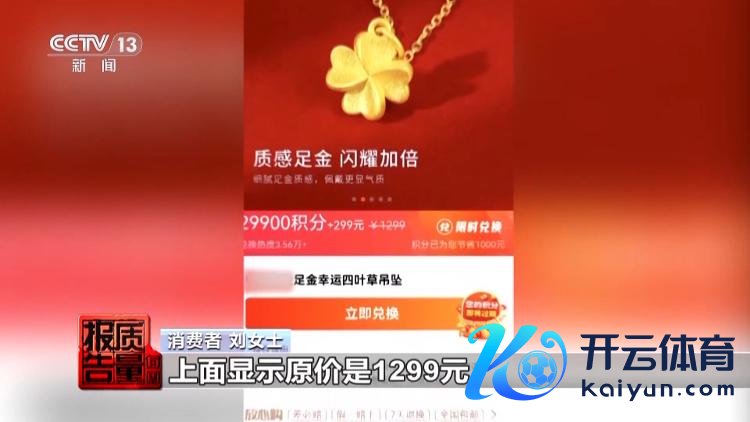刘女士登录短信中的网站集中看到,页面上不错兑换的商品不错说是林林总总。其中,一款标称足金四叶草的吊坠引起了刘女士的珍重,购物页面提醒29900会员分+299元就不错兑换。