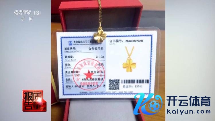 国度金银成品性量查考检测中心(南京)高等工程师 张帆:经过咱们检测,这个居品是银上头镀了金,也便是一个镀金的居品。按照咱们国度模范条目,它是不成打足金字样的,这么打可能会让破钞者误以为这个居品举座是一个足金的居品。