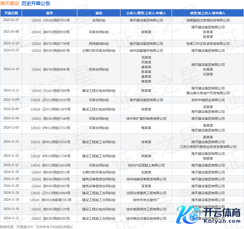 本站讯息,阐述天眼查APP闪现,近日公布了一则海天修复集团有限公司算作被告/被上诉东说念主的开庭公告开yun体育网,空洞执行如下: