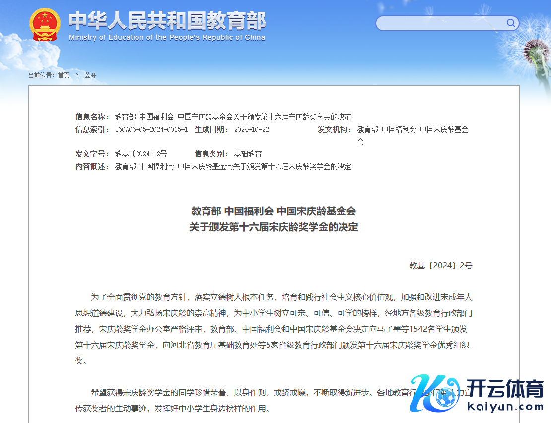 宋庆龄奖学金开拓于1994年,由解释部、中国福利会和中国宋庆龄基金会共同垄断,是我国义务解释阶段唯独的国度级奖学金,面向寰宇在校中小学生,每两年评比颁发一次。