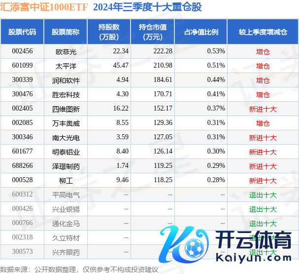 汇添富中证1000ETF为指数型-股票基金,把柄最新一期基金季报知道,该基金金钱建立:股票占净值比97.09%,无债券类金钱,现款占净值比2.75%。基金十大重仓股如下: