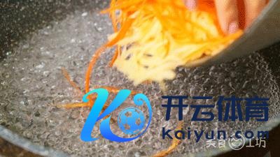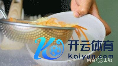 2. 土豆丝、胡萝卜丝入滚水锅中焯熟,再捞入冷水中过凉。