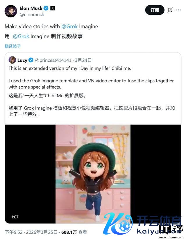 IT之家 3 月 26 日音信,OpenAI 于本周晓谕关停 AI 视频居品 Sora,埃隆 · 马斯克马上收拢这一竞争敌手留住的商场空缺开云体育,晓谕旗下东谈主工智能公司 xAI 计较全面升级其 AI 视频生成器。