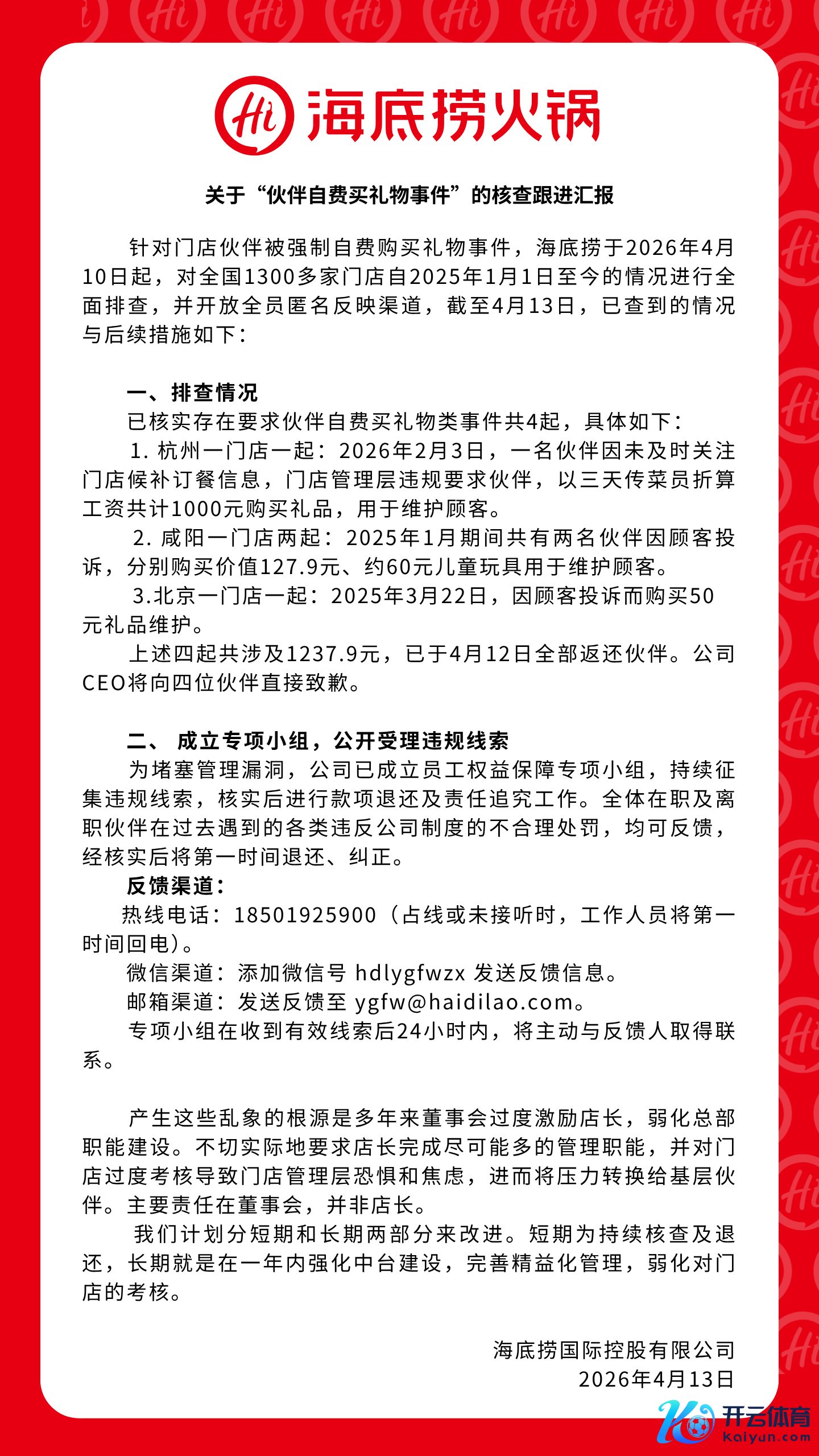 海底捞恢复“强制职工私费买礼物”:已核实近似事件4起 公司CEO将向四位伙伴平直致歉海底捞恢复“强制职工私费买礼物”:已核实近似事件4起 公司CEO将向四位伙伴平直致歉