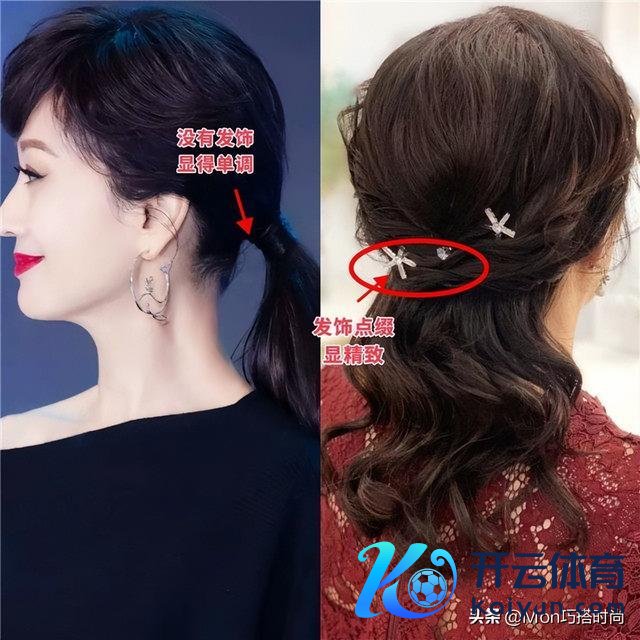 扎发太单调了怎样办?天然得安排上发饰呀,你看底下的对比,左边这种低扎发莫得搭配娴雅的发饰,看起来就有点单调,右边这种扎发研究了风雅的水钻发饰,bulingbuling的,一下子就加多了氛围感,看起来狂放还优雅。