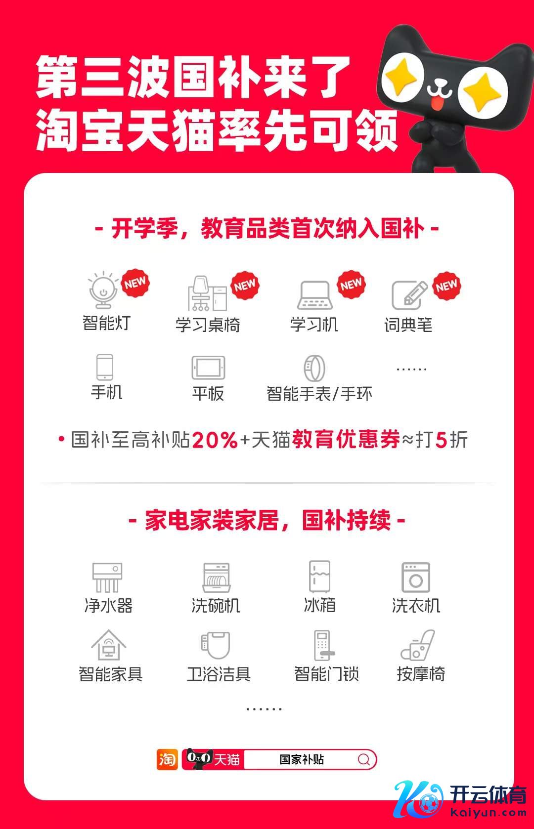 当今开云体育(中国)官方网站,北京、上海、浙江、广东等稠密省市区耗尽者,通过淘宝APP首页概况搜索“国度补贴”,即可干涉国补专区,领用操办补贴。